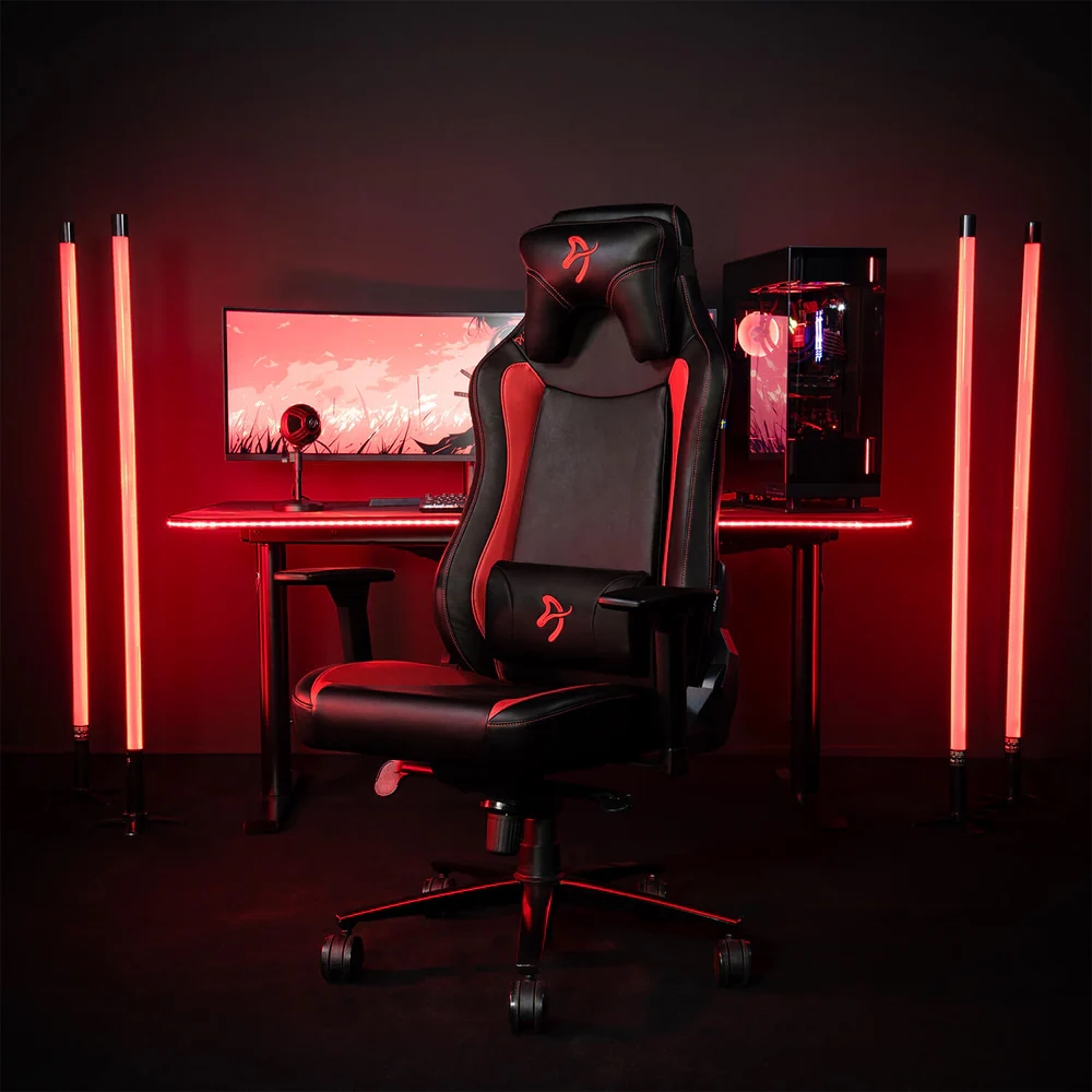 Det rummelige sæde giver god plads til bevægelse, og de to bløde støttepuder forbedrer komforten yderligere ved at aflaste trykket på ryggen og nakken. Vernazza SoftPU™-stolen kombinerer stil med funktionalitet, og den er ideel til langvarige arbejdsdage, intense spilsessioner eller afslappende stunder. Uanset om du arbejder, spiller eller slapper af, vil Vernazza SoftPU™-stolen være din pålidelige følgesvend og sikre, at du altid sidder behageligt.