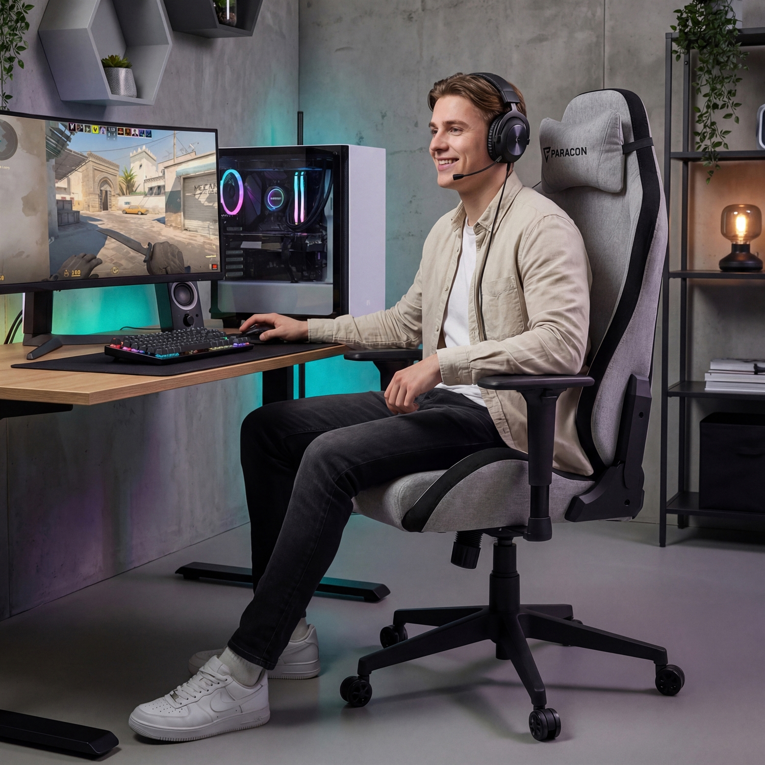 Paracon GLITCH Gamer Stol - Tekstil - Lys Grå