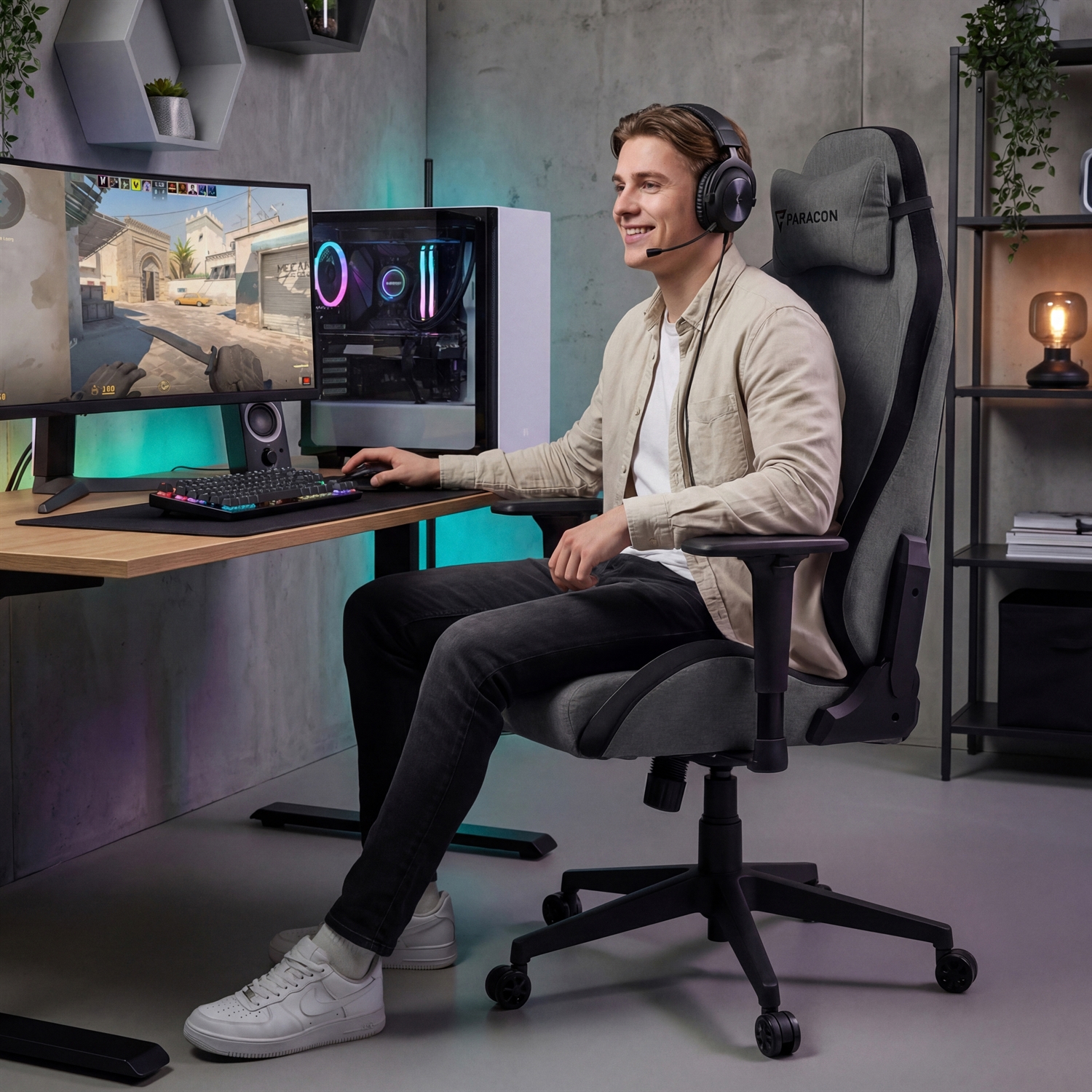 Paracon GLITCH Gamer Stol - Tekstil - Mørk Grå