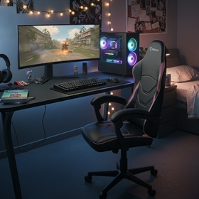 Stolen har et ergonomisk udformet ryglæn og en sædehøjde, der let kan tilpasses. De medfølgende puder til lænd og nakke giver ekstra støtte, så du kan holde fokus og undgå unødvendig belastning - også når timerne foran skærmen bliver mange.
