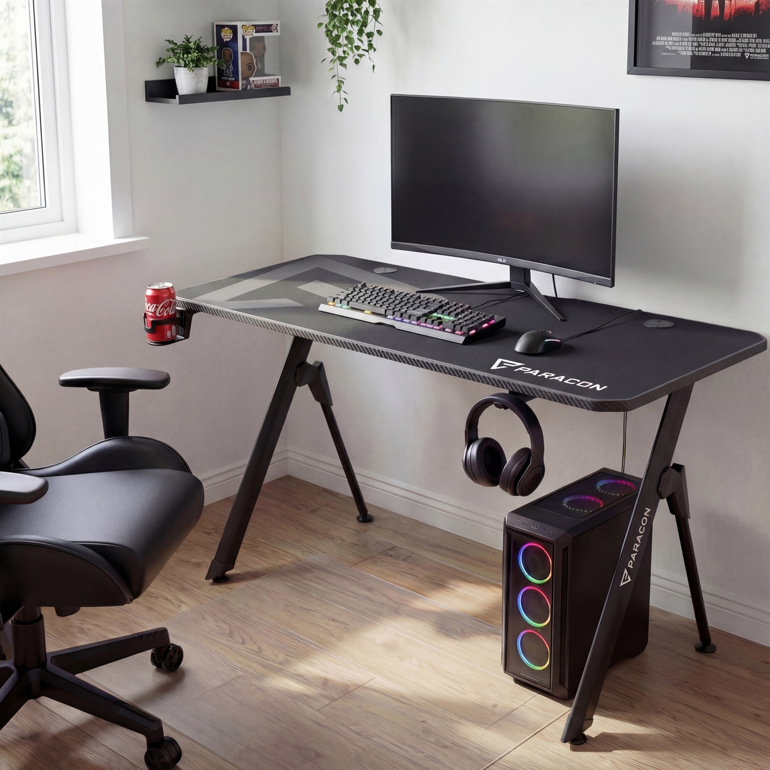 Paracon REALM Large er det perfekte gamer bord til dig, som ikke bare spiller for sjov. Bordet er nemlig udstyret med både headset og kopholder, så du kan få dit headset af vejen, når du ikke bruger det og energidrikken væk fra bordpladen. På den måde får du mere plads til musebevægelserne.